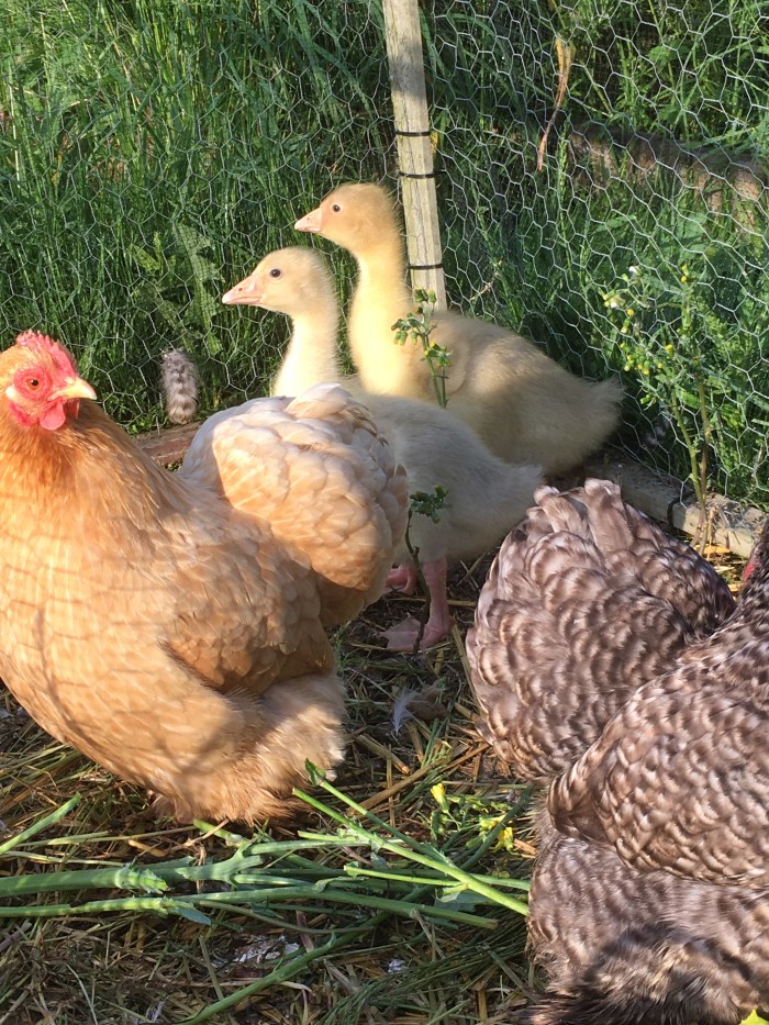 And the youngest goslings will soon be much taller than their surrogate hen mothers