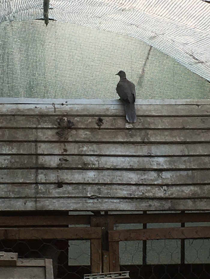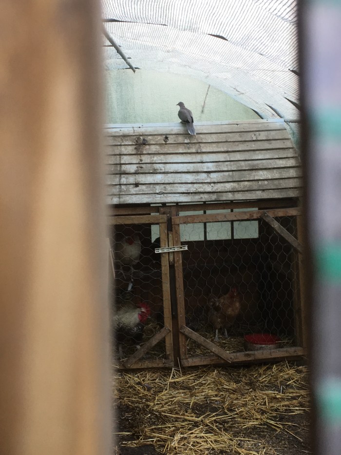As I started to open the door of the polytunnel I heard a frantic flapping and flying and crashing into the sides of the structure. I peeked through thinking that one of the hens had not been shut into their hen house last night. It wasn’t a hen.