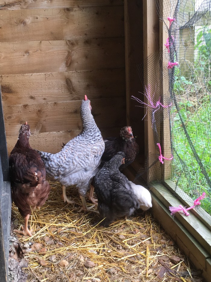 The Bantie chick and her mum were also separated today as that mum kept flying over the fence in an attempt to rejoin her own flock. The chick is with the quails and Orpington and Araucana chicks in the hay barn.