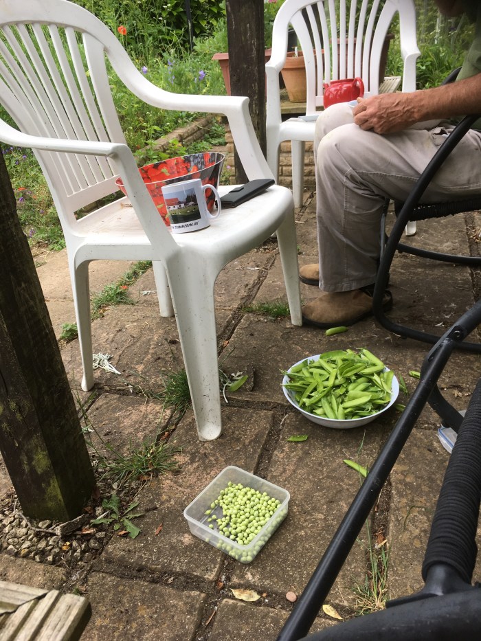 A day in the garden and in the kitchen, both of us cooking (although never together!) and shelling peas, harmoniously, as we stopped for an afternoon cuppa. Weeding, planting out, pruning.
