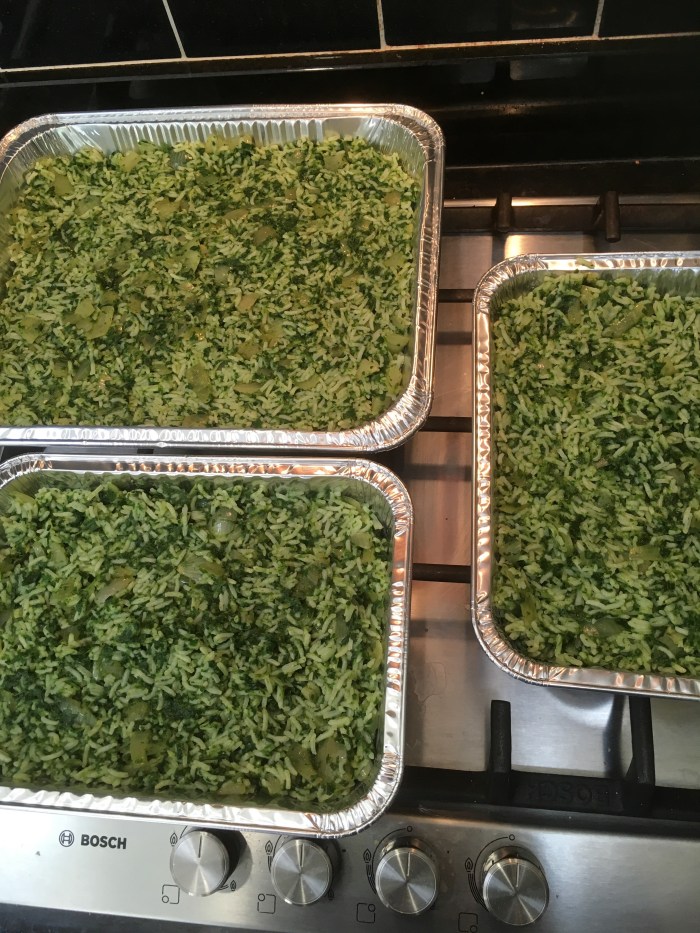 With a large crowd expected at the weekend it was a morning spent in the barn kitchen. Spinach rice is fine for everyone even (I hope) our gluten free guest.