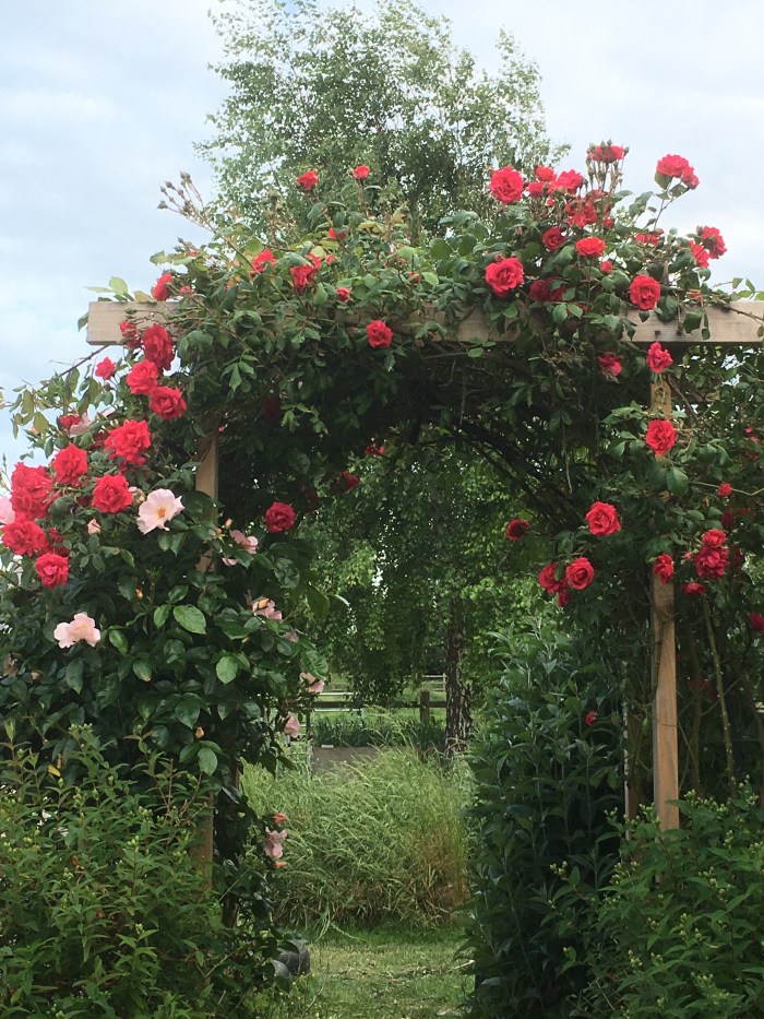 There were some fresh peas to add to the boiled potatoes to make a favourite salad with some mayonnaise. Then it was outside to trim some bushes and remove brambles and sticky, climbing weeds. The roses are in their glorious, first flush.