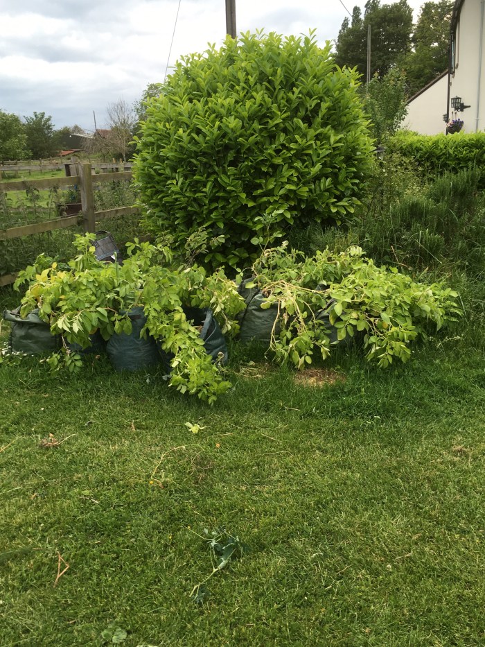 Jeremy brought in some new potatoes which he grows in bags inside the greenhouse and polytunnel until space demands that they come outside.