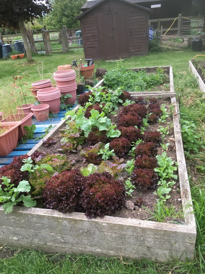 There are plenty of lettuces and radishes to use and prepare for our weekend guests.