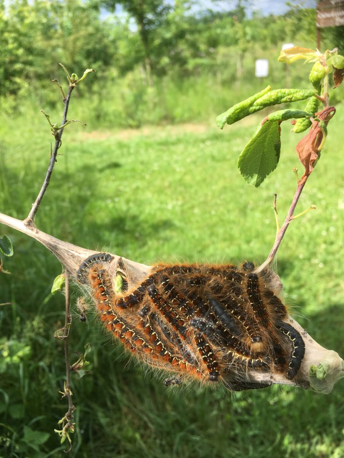 They look like processionary caterpillars which can cause an allergic reaction in some people. Leave well alone!
