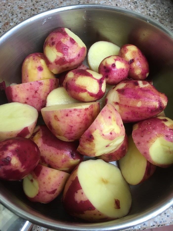 Another bag of new potatoes yields plenty of red tubers for our supper
