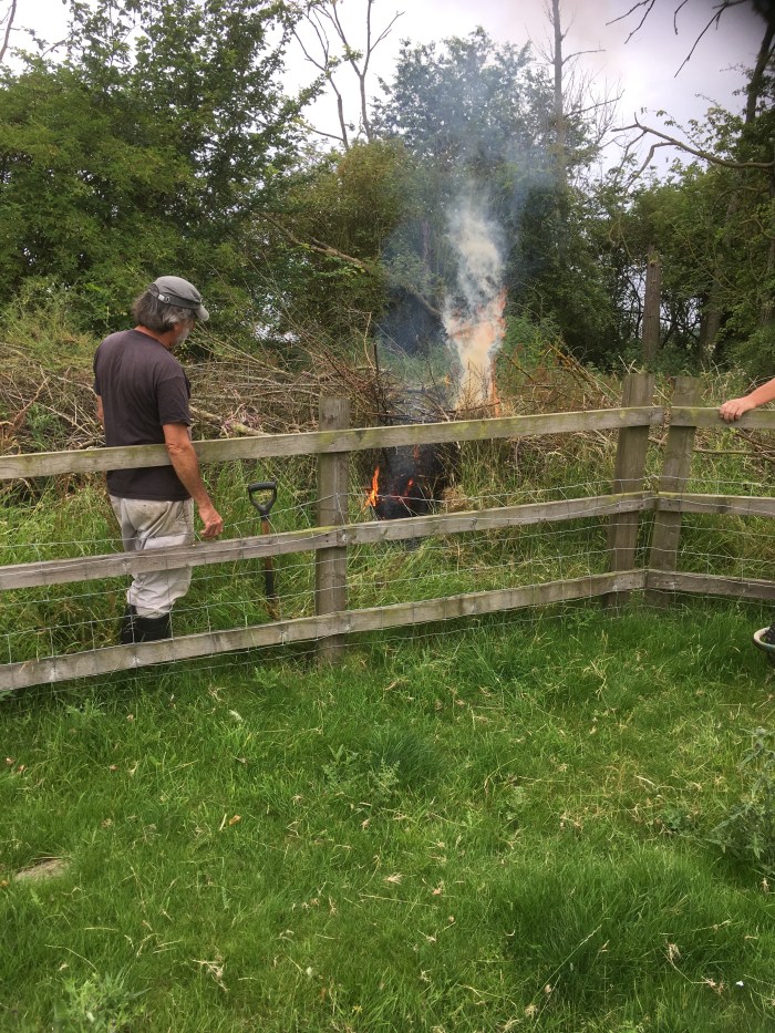 When I left for London Jeremy and Chris were tackling a huge pile of wood and hedge thinnings that had accumulated over several months. I spent a couple of hours with mum who enjoyed the fresh raspberries that I picked for her this morning.