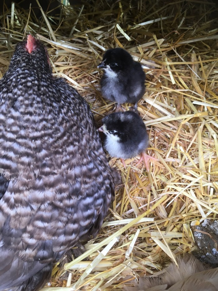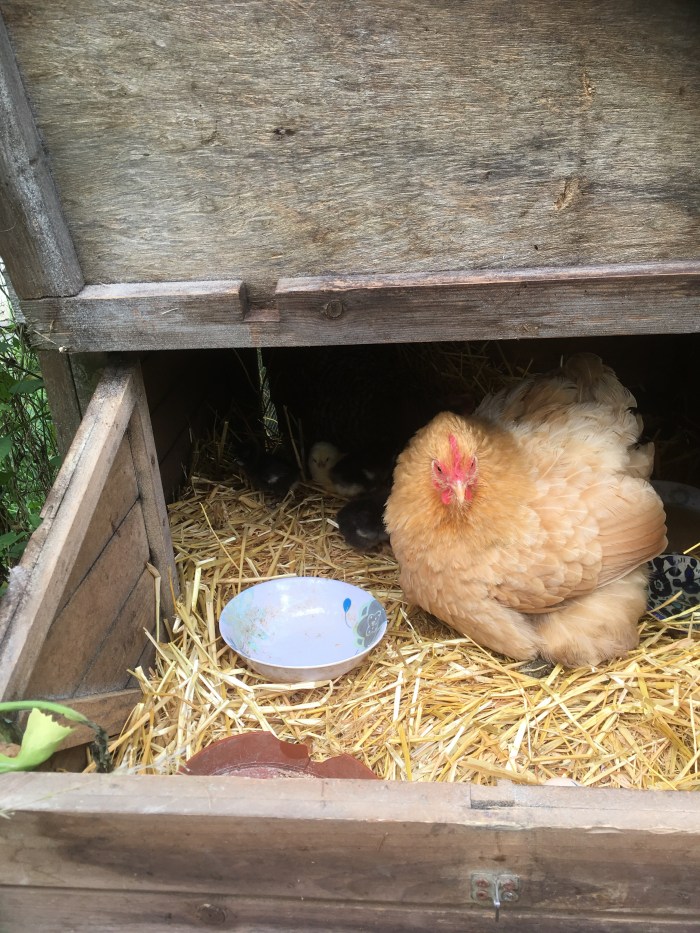 These two beautiful Bantie co-parented the goslings two years running and are now looking after six little chicks. Well done girls.