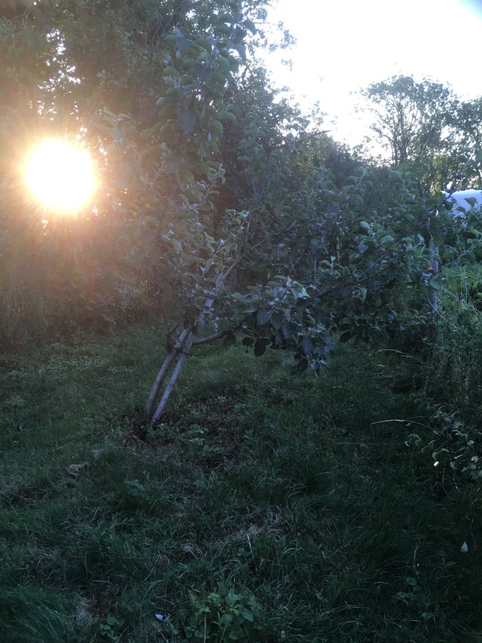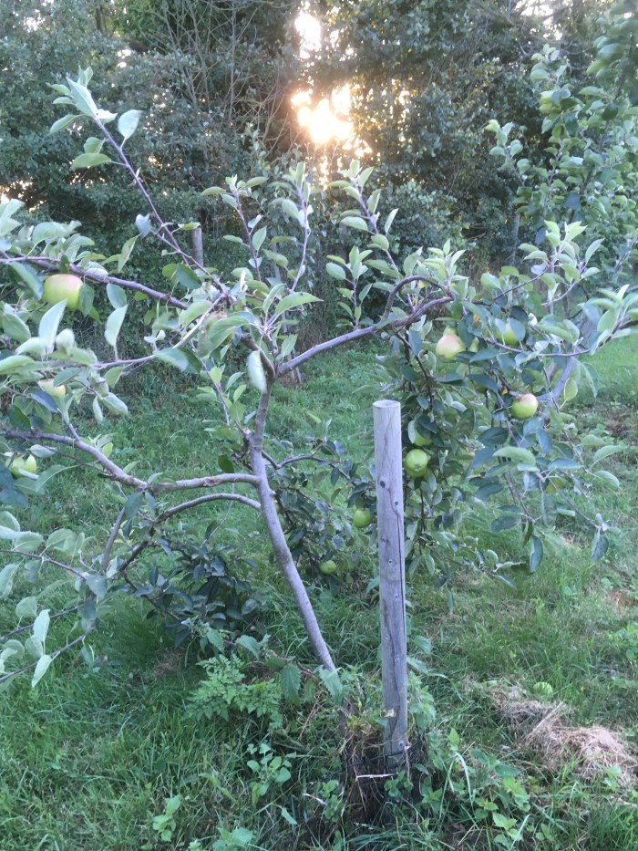The heavy winds have bowed (but not uprooted) two young apple trees. We will stake them and tie them upright and hope that they survive the onslaught of yesterday.
