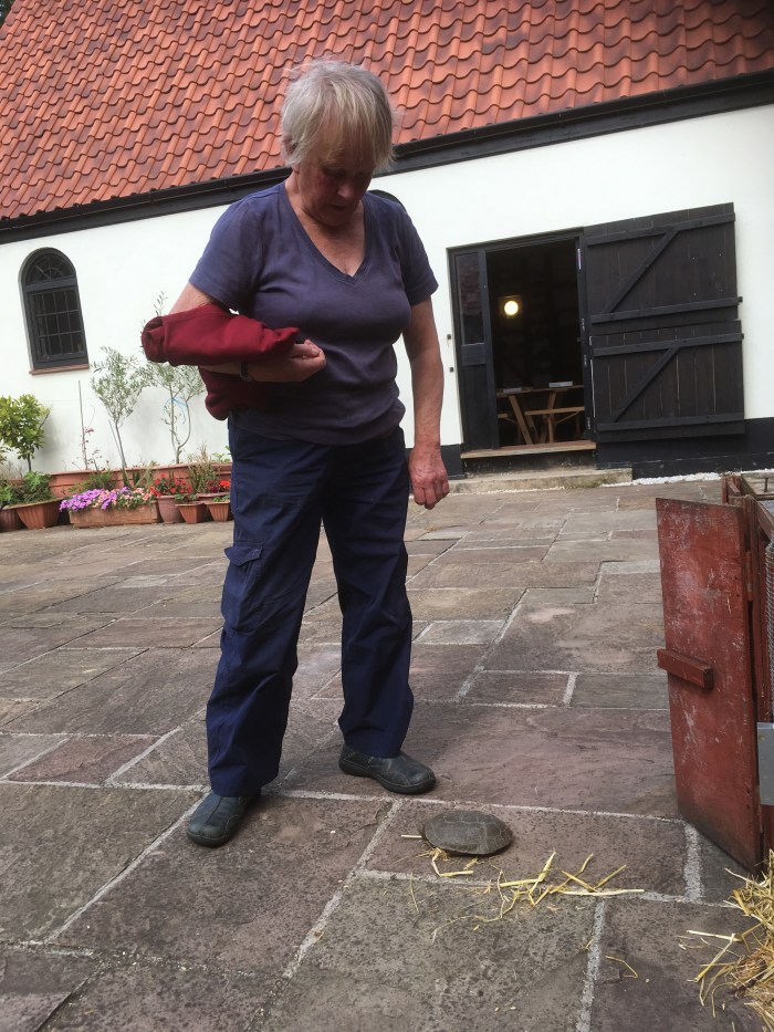 While she was absorbed with her task our friend called in for a quick catch up and I showed her the tortoise.