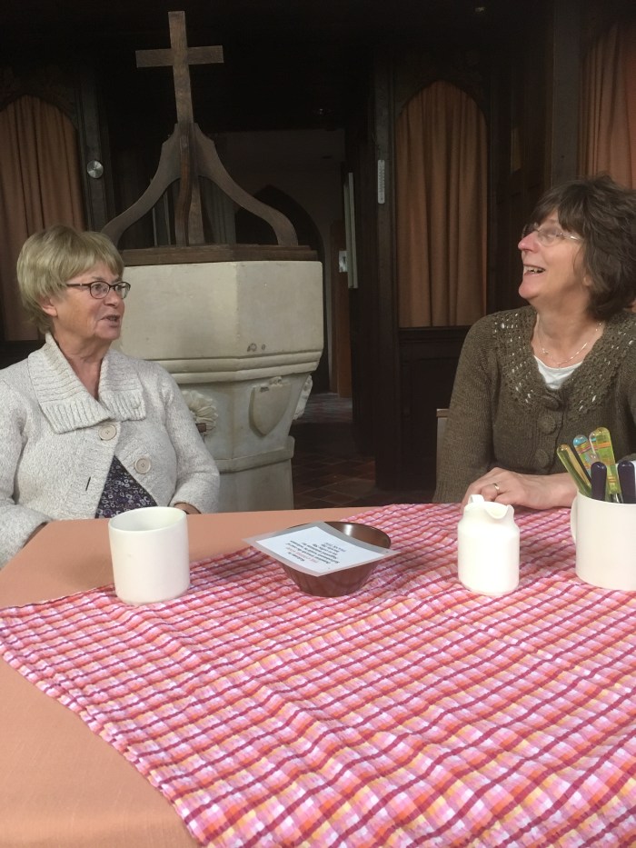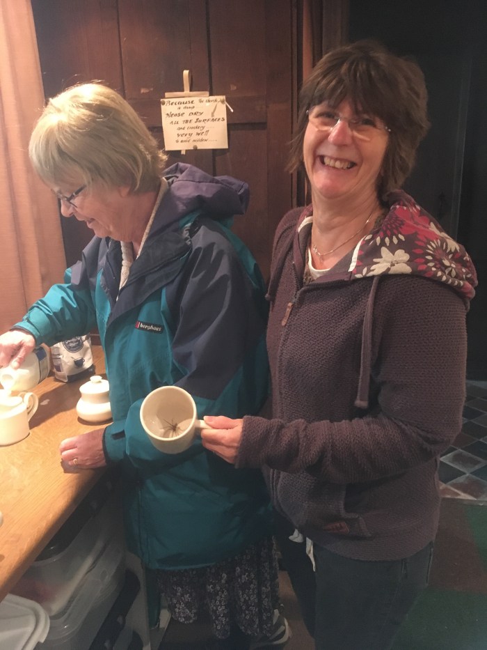 Before our Wednesday walk we helped set up the table for coffee at St Denys