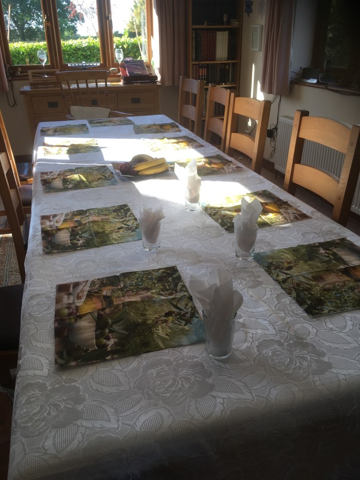 September 17, 2019 by gfreedman2013 Breakfast….food, conversation and sunshine The retreaters are off for a country walk and I am starting to set the table for lunch. Share this: Share on X (Opens in new window) X Share on Facebook (Opens in new window) Facebook Like Loading... Related