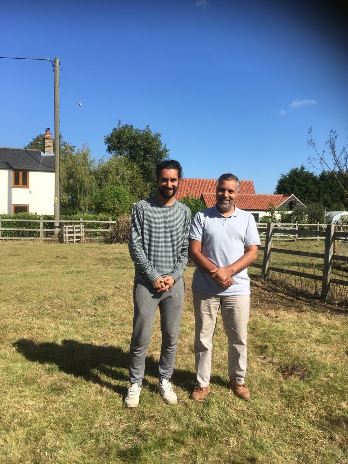 We usually sell most of the lambs when they reach six months old. Some go to smallholders, some go to folk who will eventually slaughter and eat them (usually the ram lambs) and this year we still have four lambs left, three boys and a girl. Two of the boys have buyers and we might keep one of the twins as she is a very pretty sheep. That left Lambikins and I didn’t want to think of him as going straight from a happy life at The Gables to the slaughter house. Yesterday Jeremy received an email from a young man in Bedford. He has some chickens and has just bought a goat and wanted a lamb to keep the goat company. His dream is to own a smallholding and he and his dad arrived today to see the lambs.
