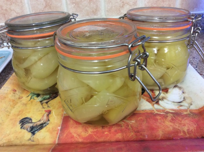 One of the retreaters (here for walking and yoga) turned out to be in the year above me at the wonderful Camden School for Girls. Founded by the visionary Victorian women’s educator, Frances Mary Buss, it was the non fee paying sister school to The North London Collegiate School ( and far more cool and hip, of course!). The retreater and I shared a mutual friend and in the course of the two days this lovely women suggested that I bottle some of our surplus Conference pears. Good call…..thank you.