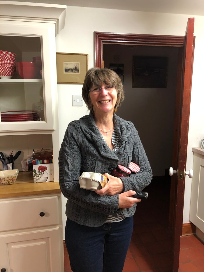 A friend arrived to collect some jars of homemade jam which will be one of the raffle prizes at the village jigsaw puzzle fundraiser this coming weekend.