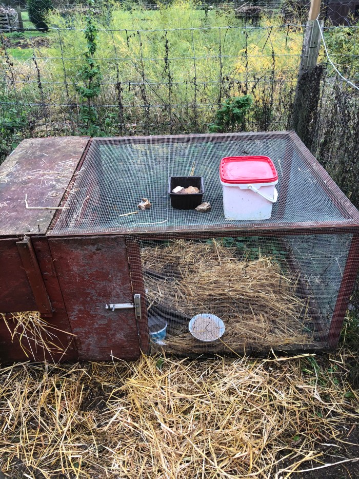 We have moved Mrs Silkie and her five babies to a new house where they can get fresh air
