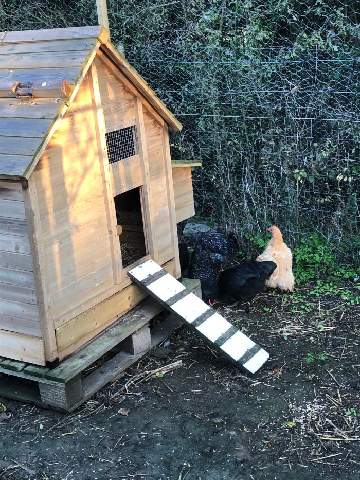 This morning I moved Lemon and her four naughty teenagers – they keep escaping over the low fence and running around the vegetable garden. They jump out but don’t know how to get back to mum. The new run has a bigger house and higher fencing.
