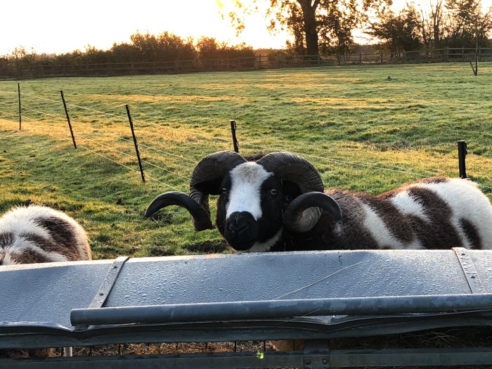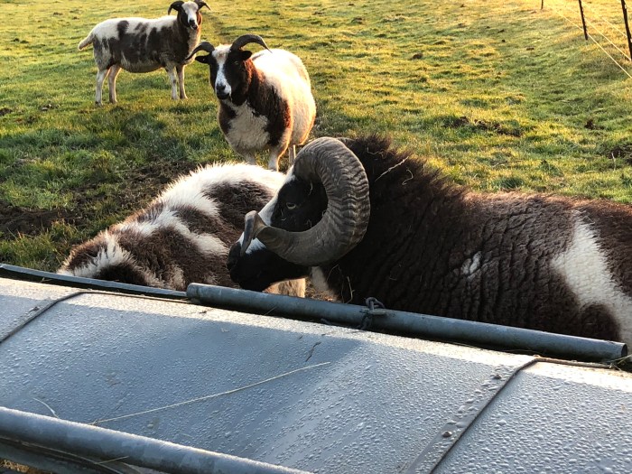 Unlike the grumpy old ram we kept in Devon, forty years ago, he has never tried to “ram” into me and he is a gentle and likeable creature who takes his flock responsibilities seriously. Good old Tufty.