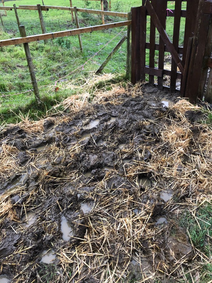 Mud and puddles everywhere and the chickens refuse to leave their houses.