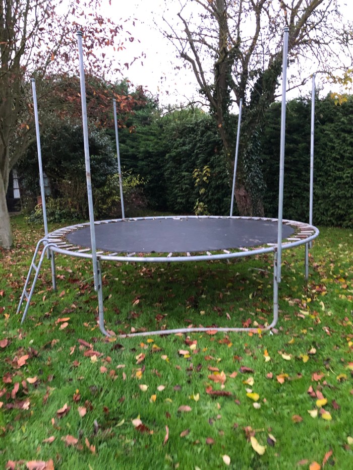 I returned home to find that Jeremy had put together the trampoline that a friend in London had offloaded on us. It now needs a safety net