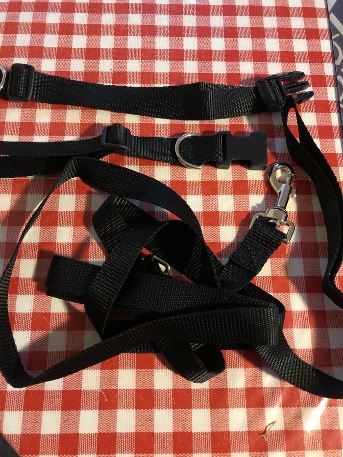 New collars and leads for Willow and Wisp. “Walkies!”