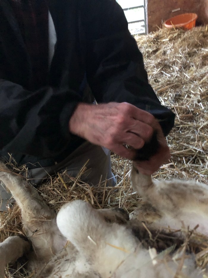 To treat a lame sheep. I get the easy part, holding the sheep and cuddling her