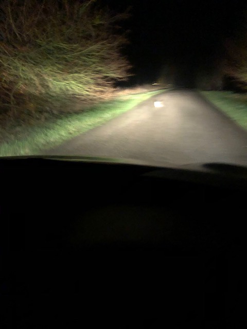 100 yards further on two rabbits bounded across the road, looking white in my headlights. They caught me (and my iPhone) unawares but I was driving slowly enough to avoid crushing them beneath my tyres.