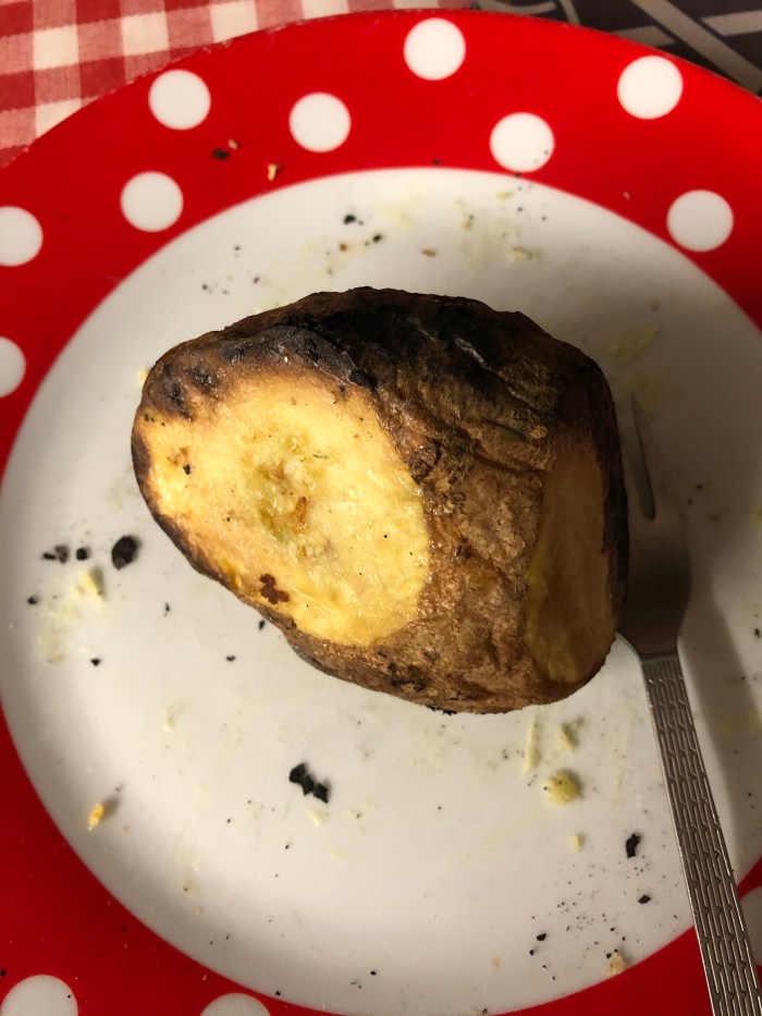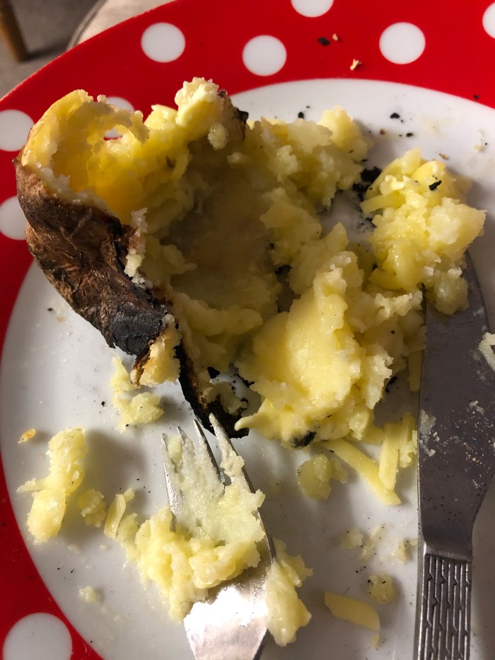 December 14, 2019 by gfreedman2013 Our Saturday night treats ….. Potatoes baked in the wood burner Full of butter and cheese And eaten in front of Match of the Day Share this: Share on X (Opens in new window) X Share on Facebook (Opens in new window) Facebook Like Loading... Related