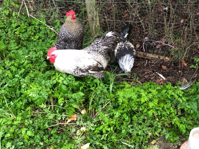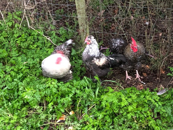 We have moved the chicks and cockerels around, making new flocks and returning mothers to their original houses. We now have five redundant cockerels living together in the orchard house.