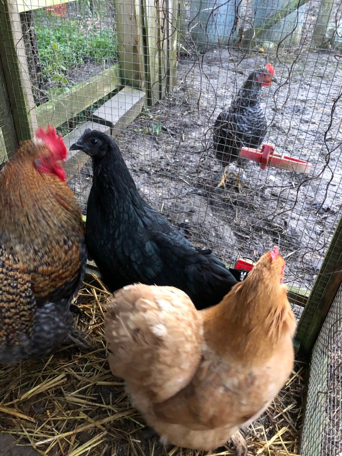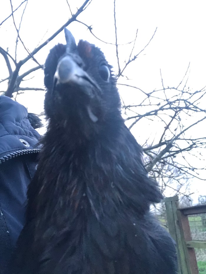 So many every day expressions emerge from the chicken run. We talk about clipping someone’s wings. Well, in the chicken runs we really do need to clip some birds wings. This young black hen flew out of her run yesterday so this morning we cornered her, cuddled her