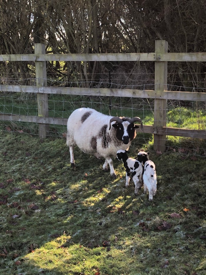 I received a quick call to say the Perky had given birth to twin lambs – a boy and a girl.