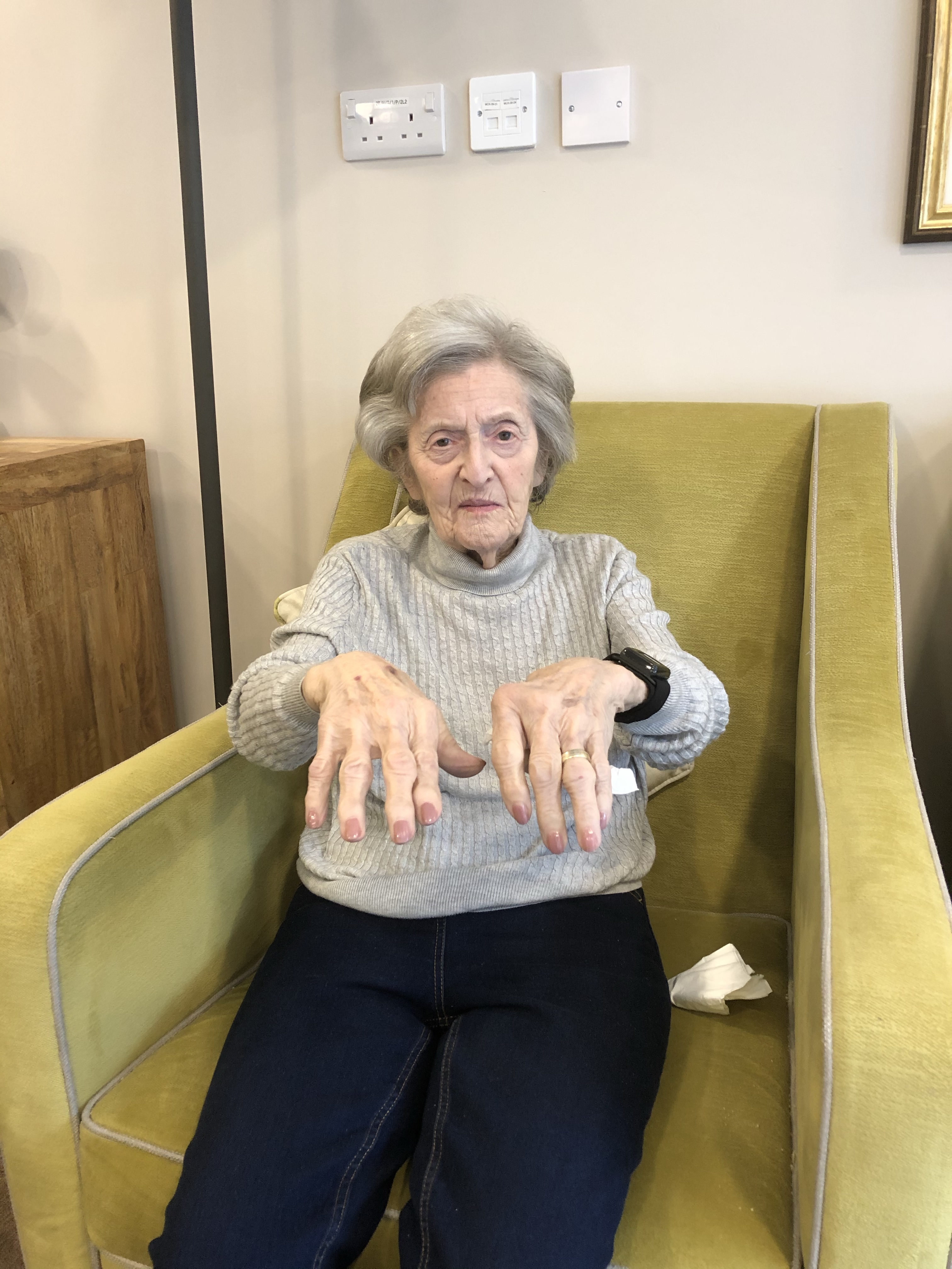 I usually visit mum on a Tuesday but went to London today instead. I arrived to find mum having her feet treated by the chiropodist, her hair recently coiffed and her fingernails had been painted by the visiting manicurist.