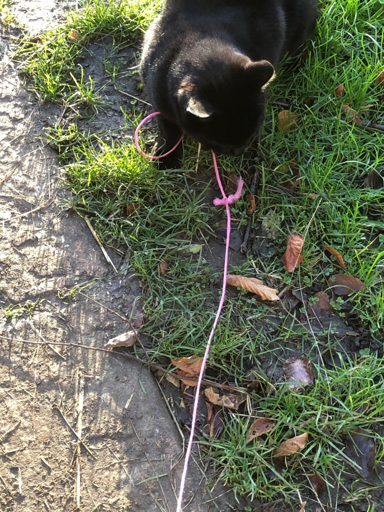 Then it’s playtime for Nigel who chases the baler twine as I walk back to the paddock to let out the goats. Click below