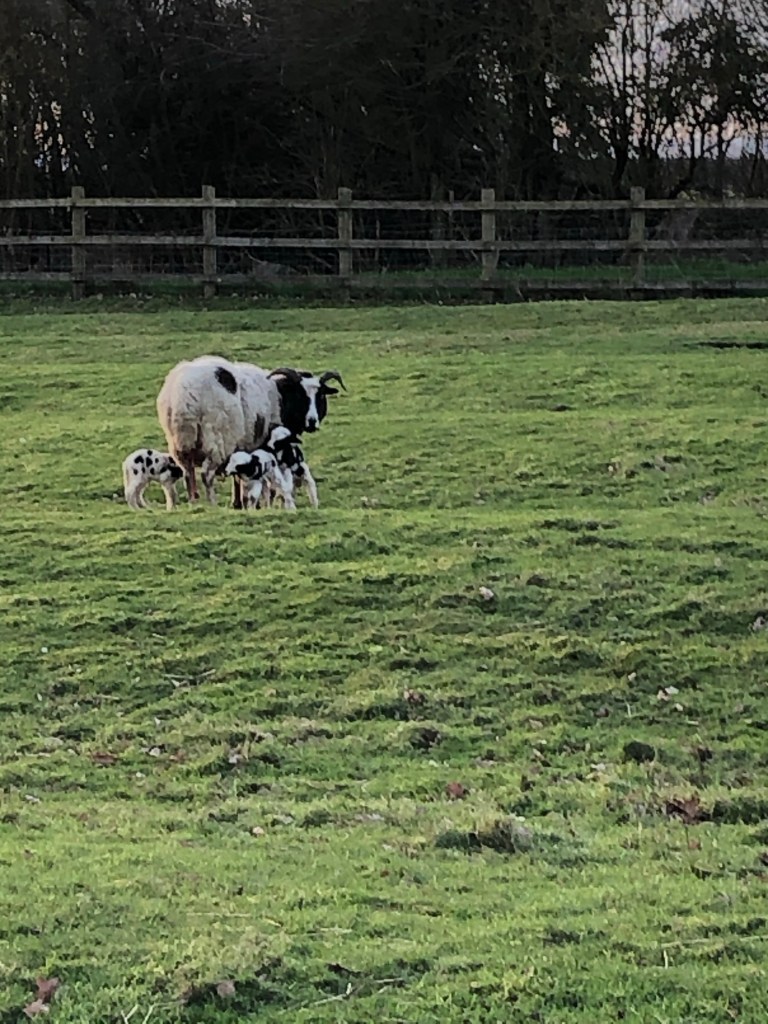 We will bring ewe and lambs into the barn so that we can keep an eye on them. If needs be we will give “top up” bottles to the weakest lamb and extra food and water to the hardworking mother.