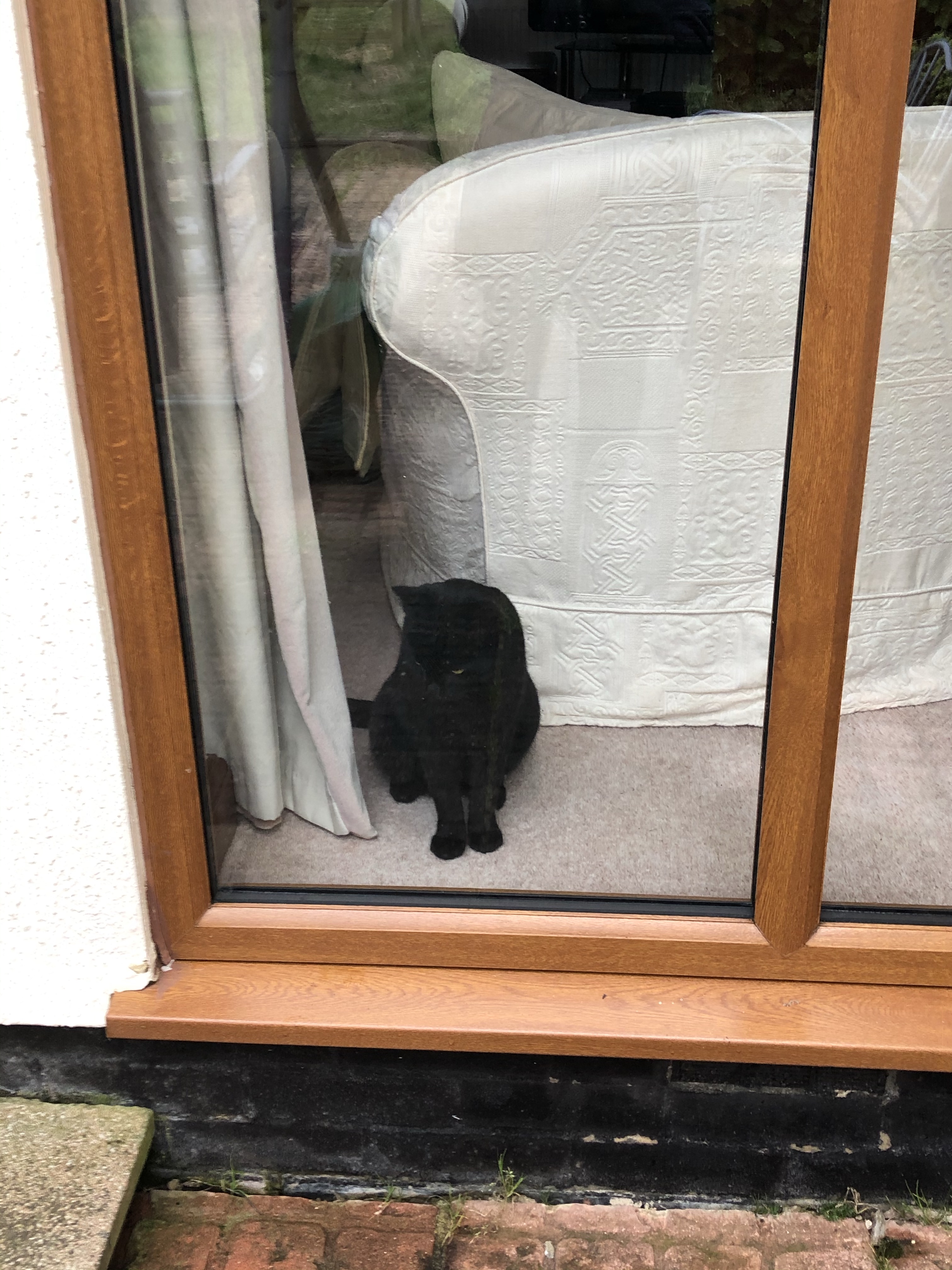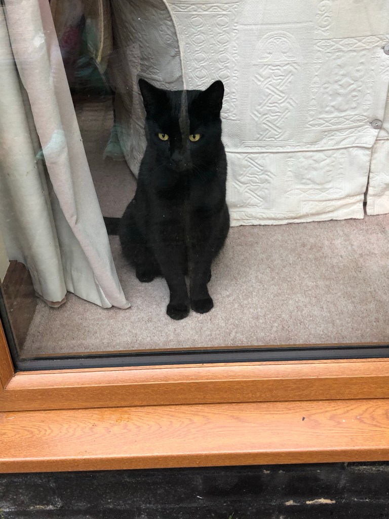 One thought on “I’m outside and Nigel is taking shelter from the storm – inside!”