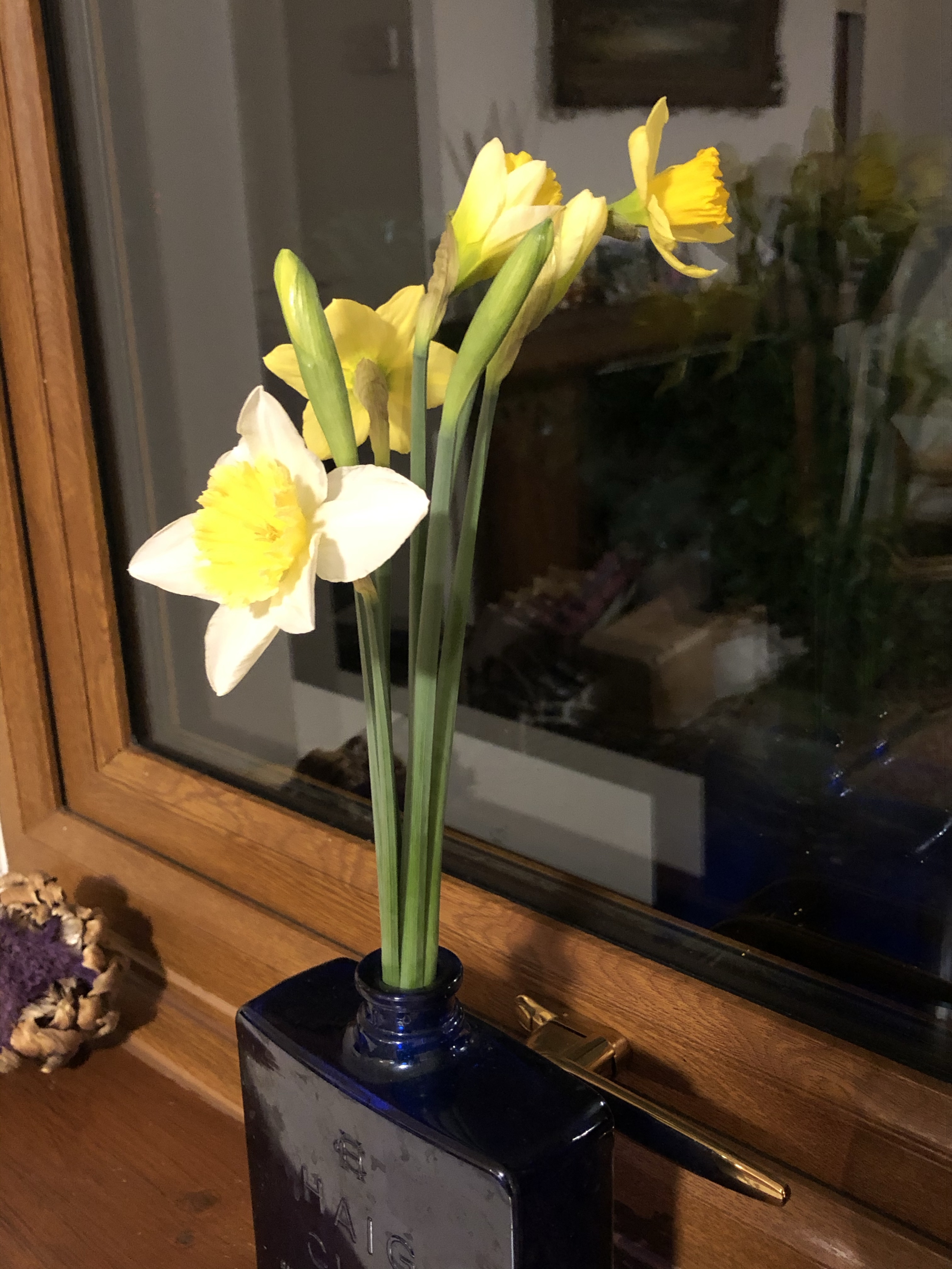 And every Friday Jeremy cuts some closed dils and brings them indoors and puts them in a vase (an old whisky bottle). They begin to open overnight and last for a few more days.