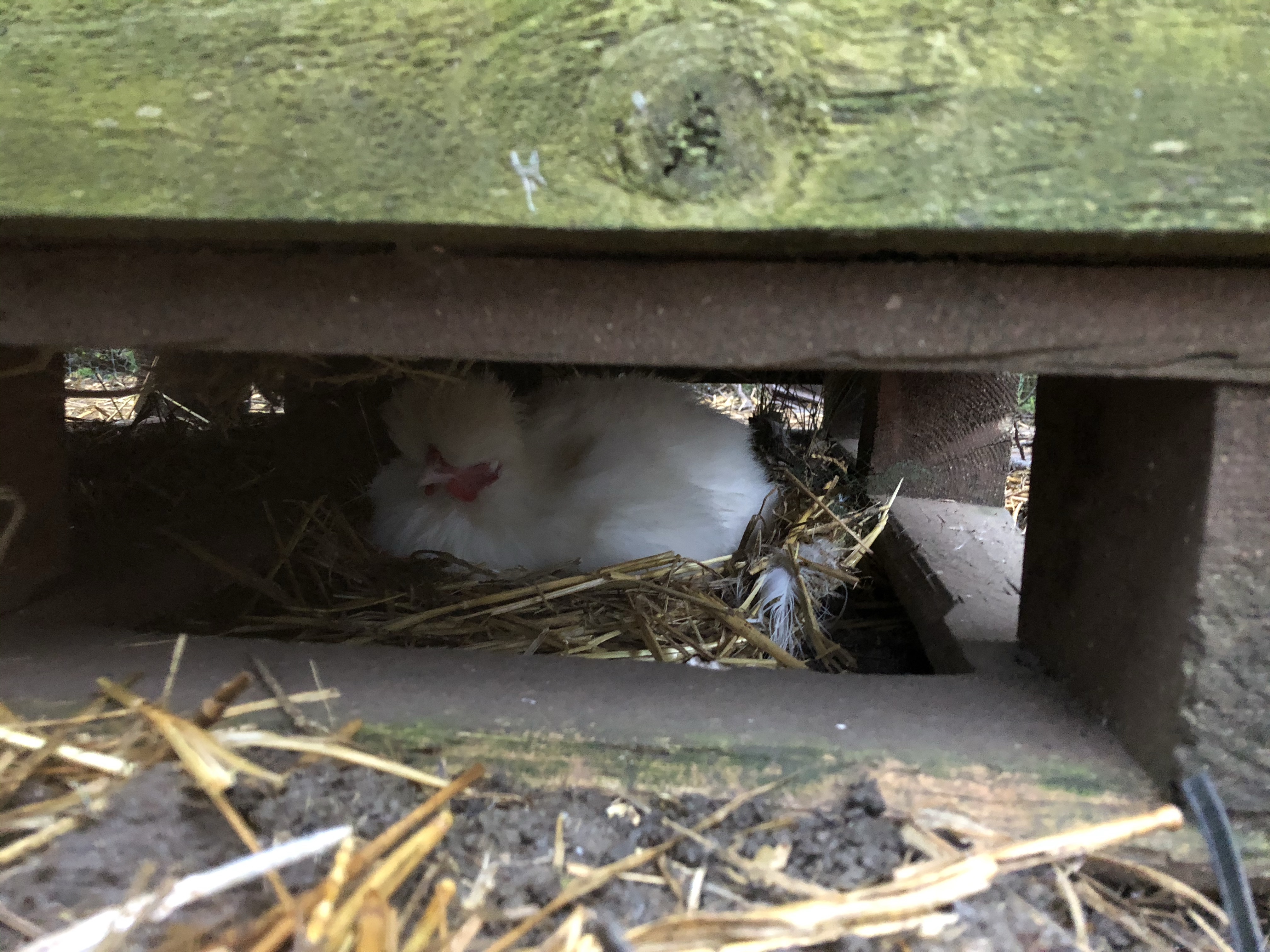 February 24, 2020 by gfreedman2013 Mrs Silkie has been laying eggs under the Silkie hen house Now she has gone broody- under the house. Start counting 21 days. Share this: Share on X (Opens in new window) X Share on Facebook (Opens in new window) Facebook Like Loading... Related