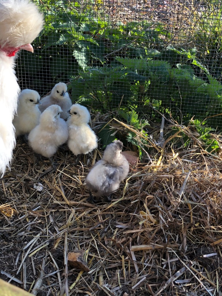 2 thoughts on “Mrs Silkie and babies enjoying the sunshine