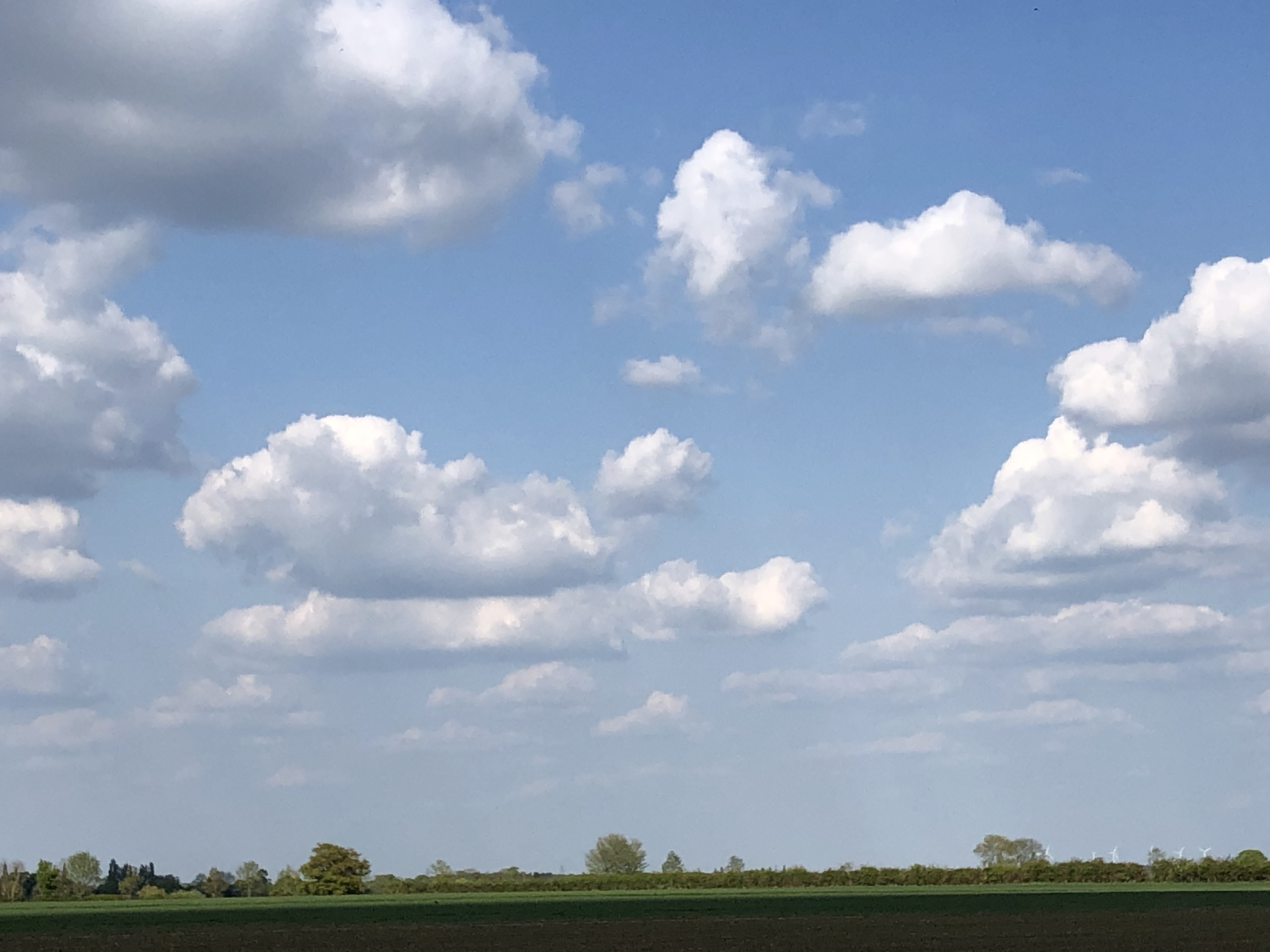 The skies are blue and dotted with white clouds