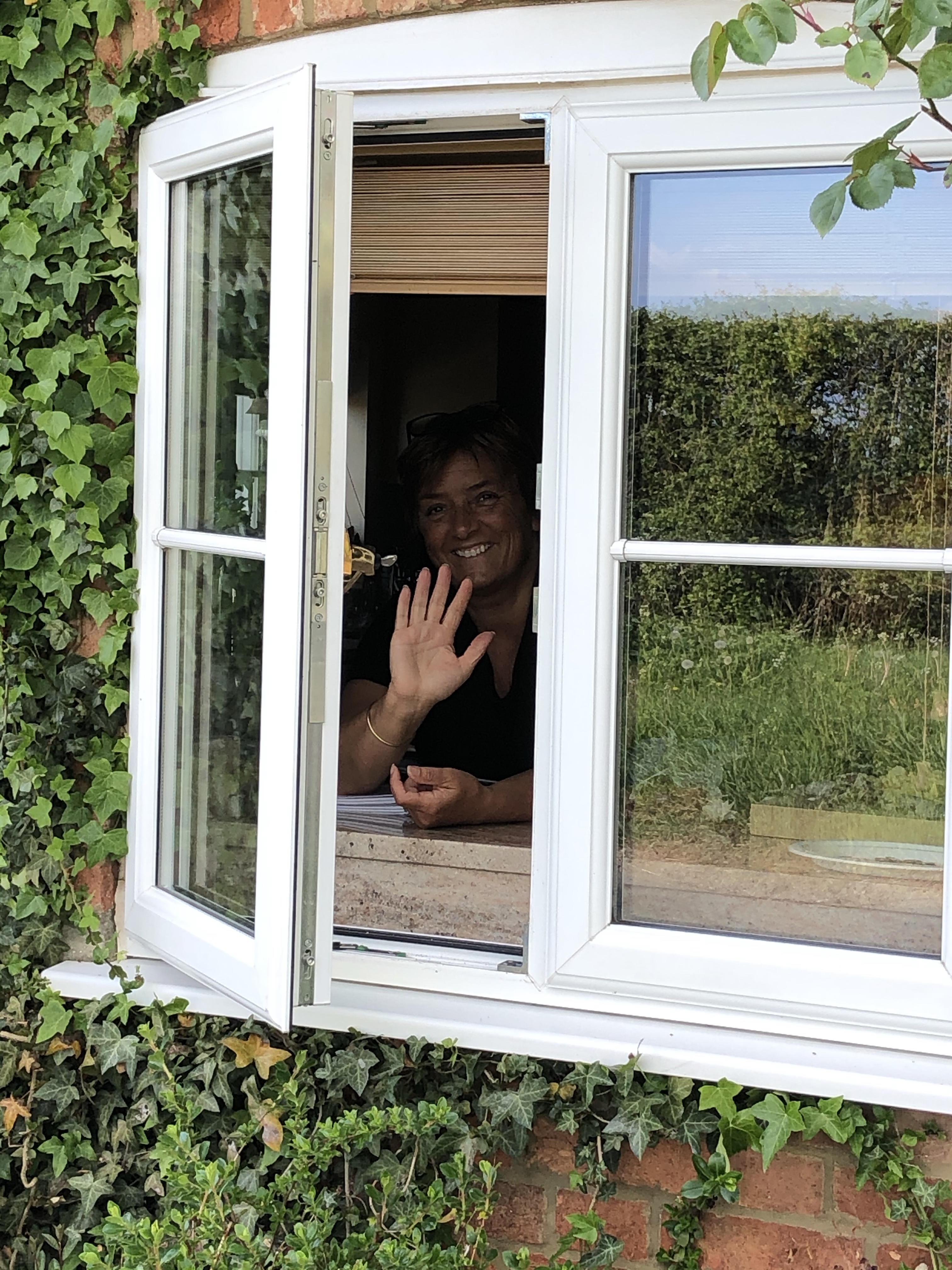 A walk yielded two socially distanced chats. One with a friend through her car window and the other with a friend through her cottage window