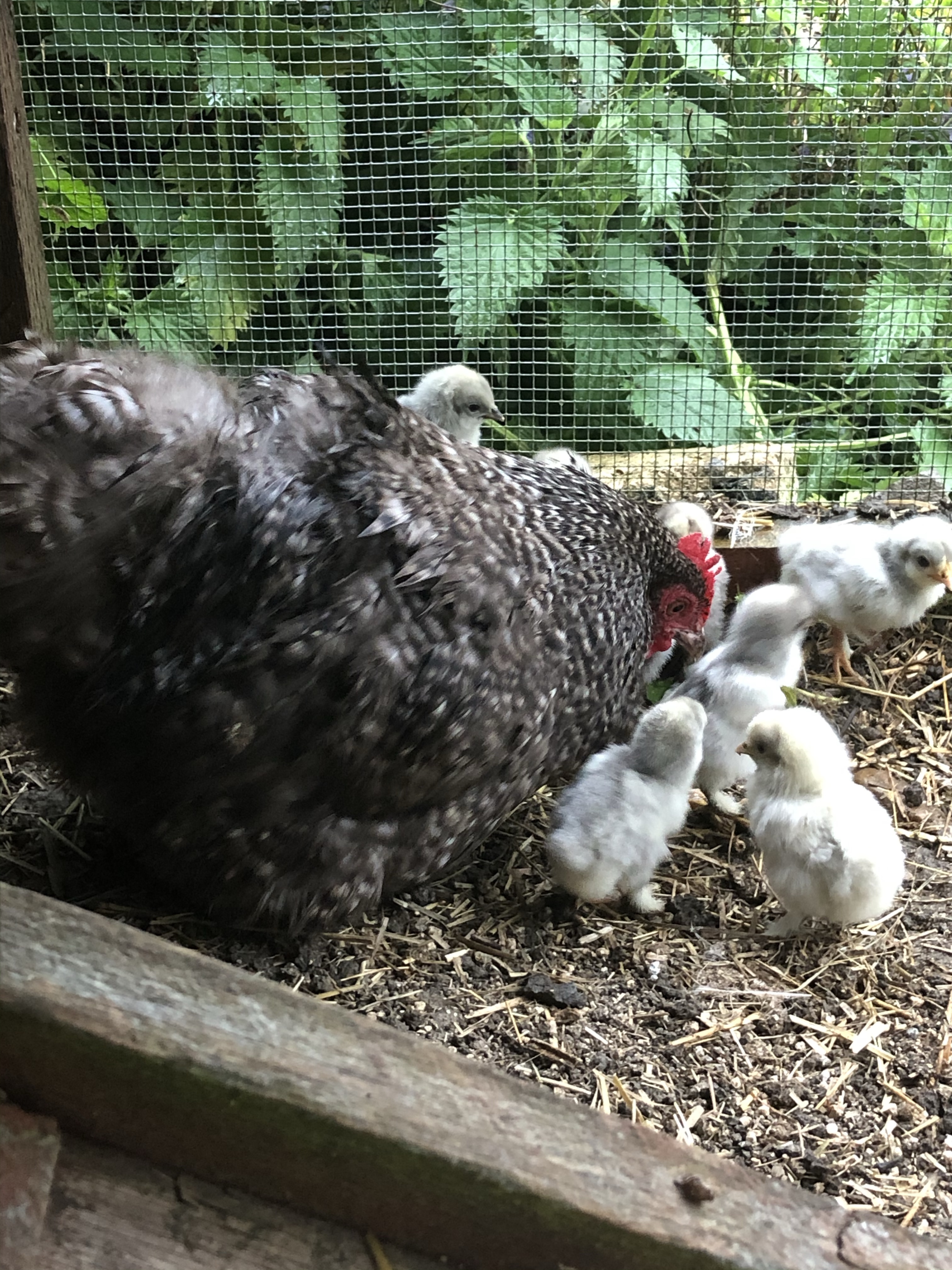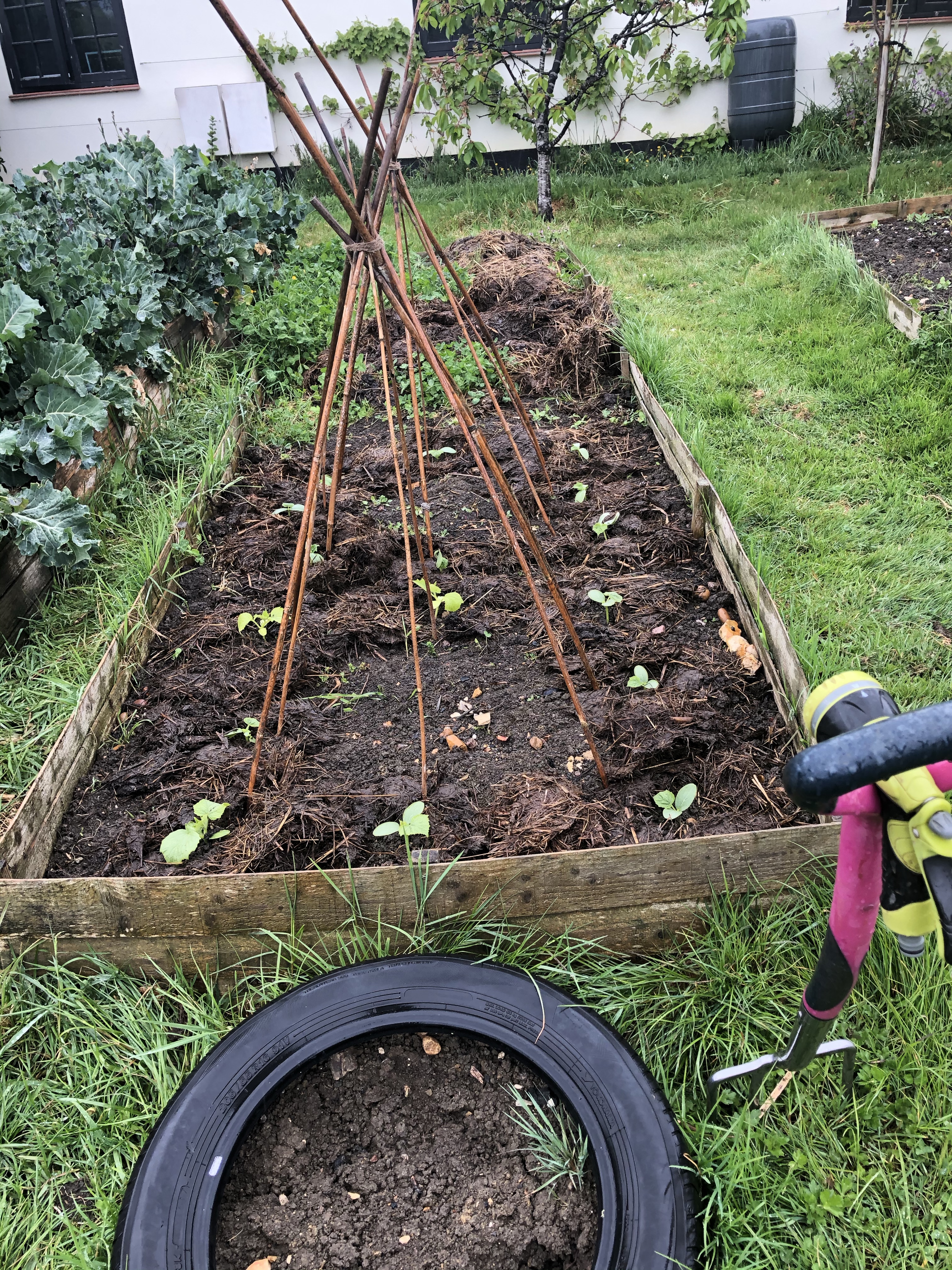 Yesterday we planted four rows of sweet corn – all different varieties. If only half germinate and grow we will have plenty to eat and share. The chickens don’t like to get their feathers wet so I have put some plastic over the house which is home to the Bantie and her eleven chicks.