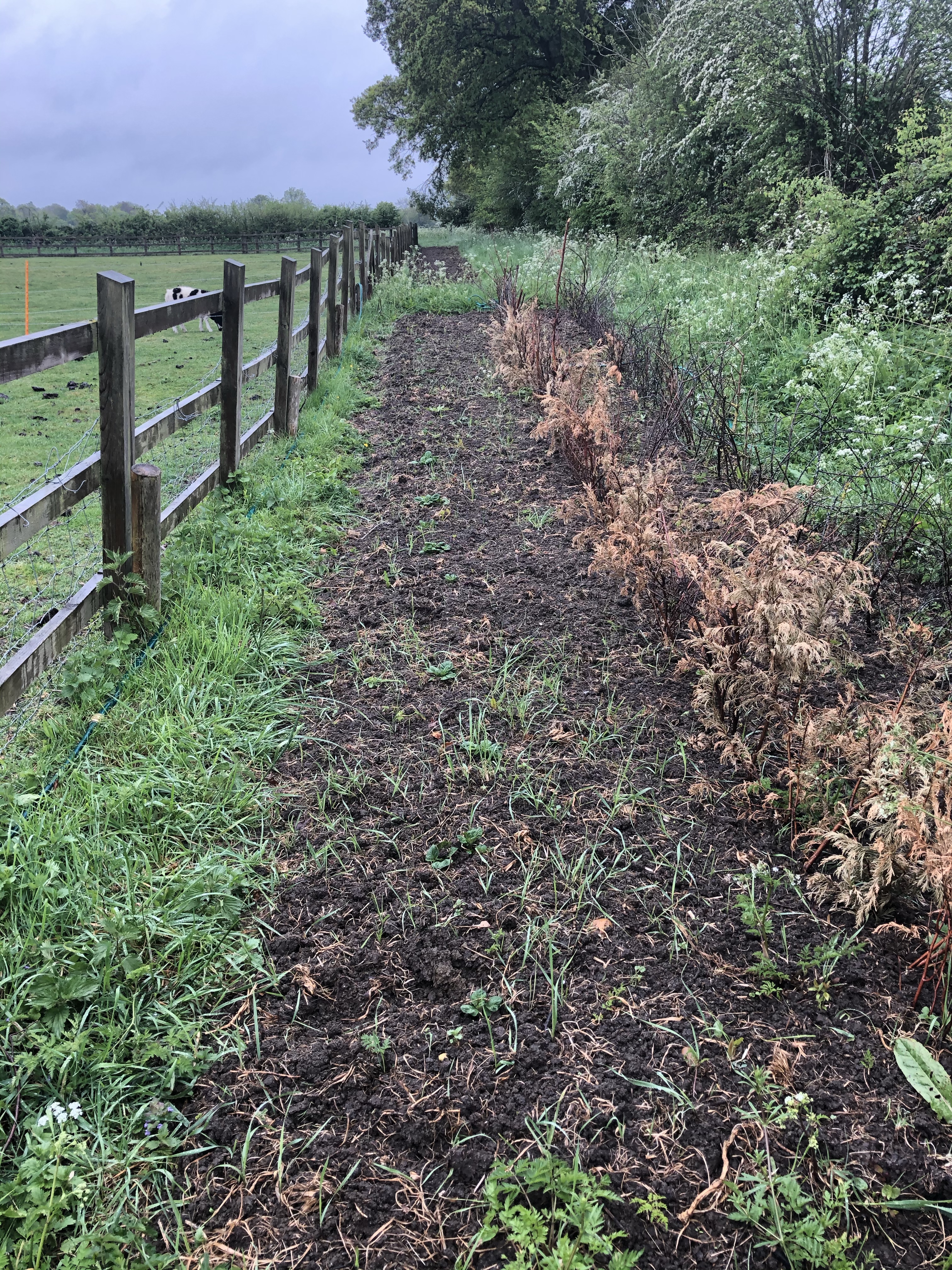 The newly ploughed strip of ground (around the perimeter of the field) is especially in need of rain. The potatoes are beginning to show. They need moisture.