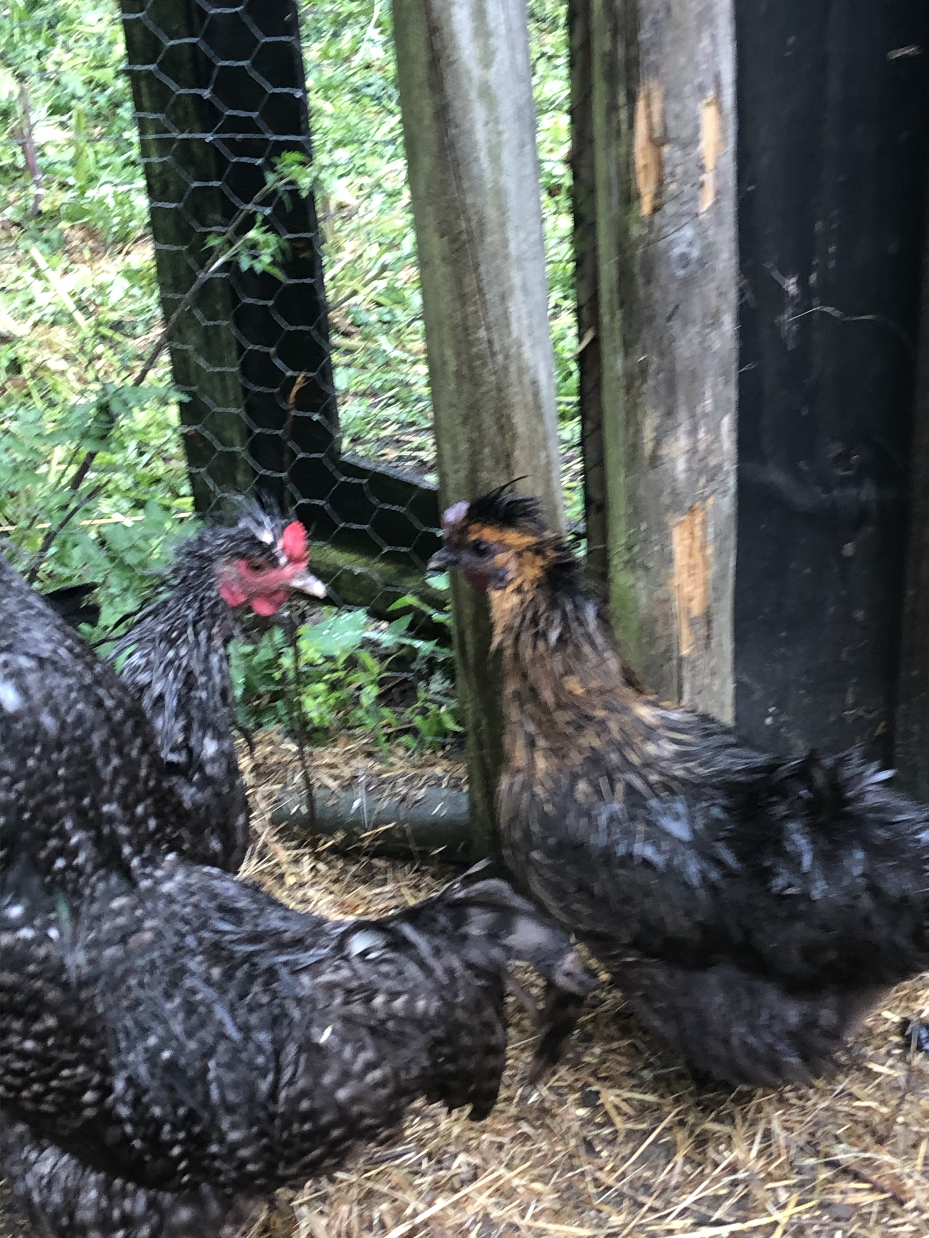 The “Pom Pom” girls are soaked but won’t retreat to their dry hen house