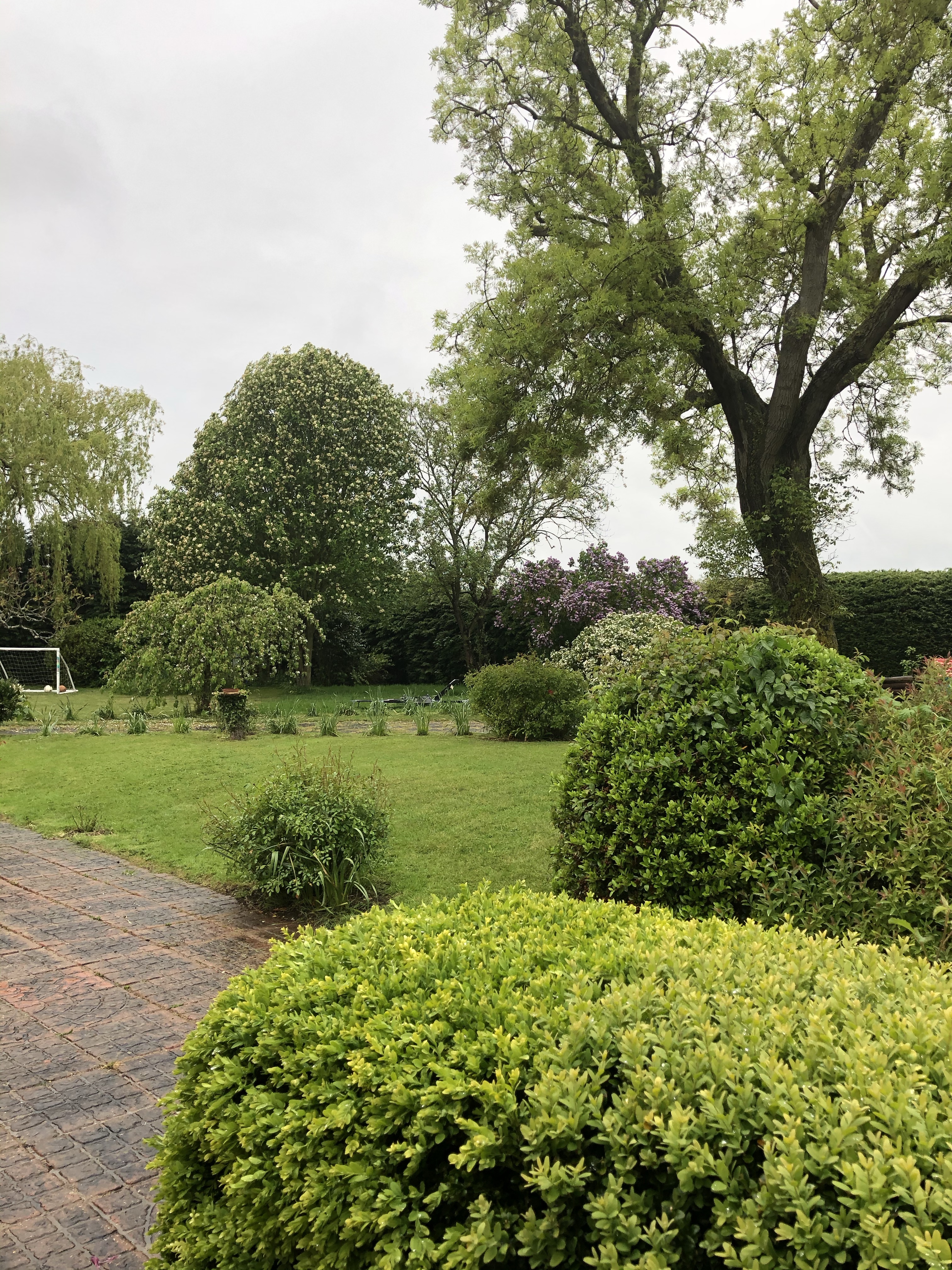 The rain has enhanced the vivid and varied green colours of the trees and bushes, shrubs and vegetables. The greens are luminous in spring and at their very best.