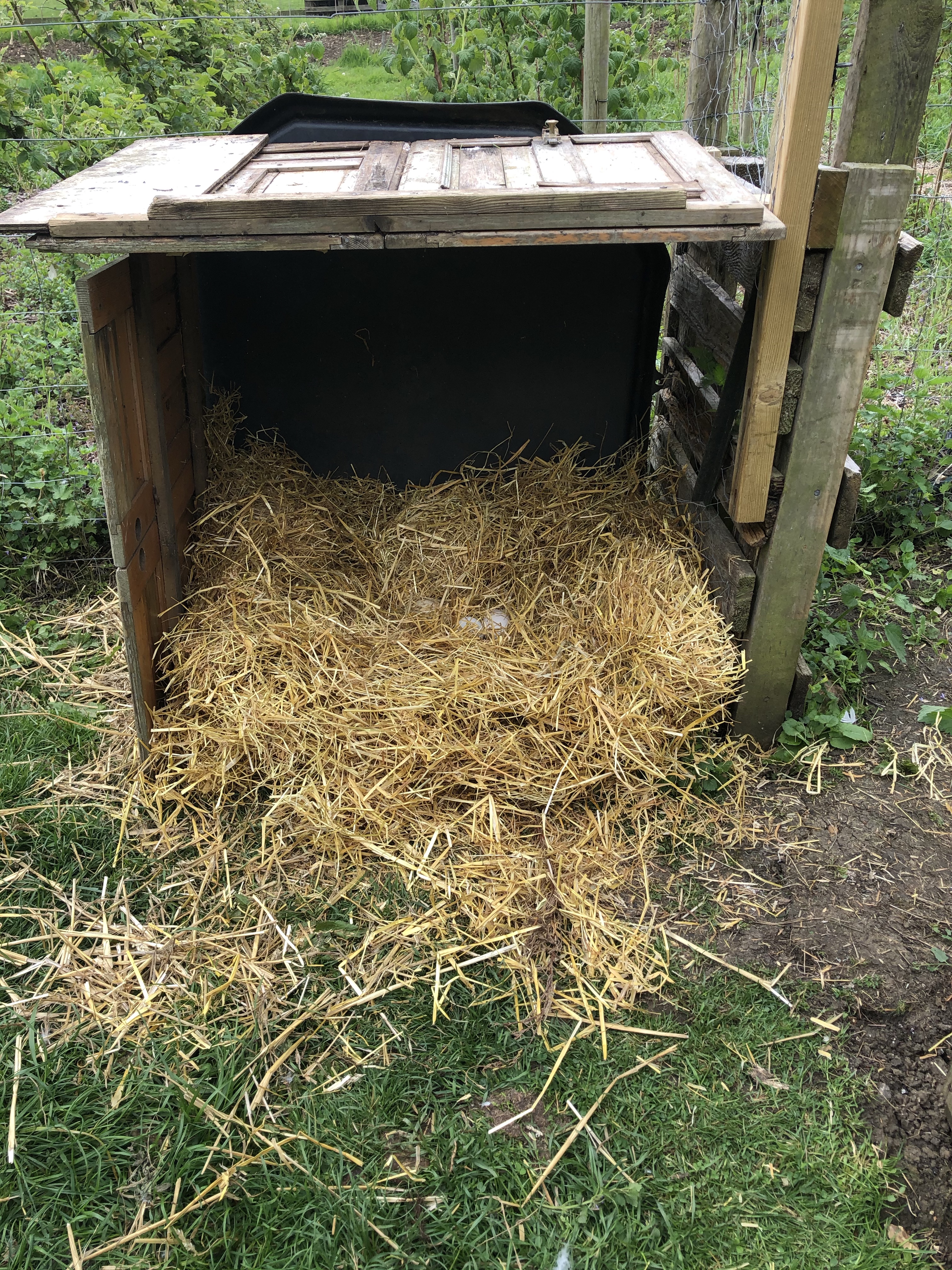 Mrs Goosey has now laid four eggs. To keep the crows away Jeremy set up a rudimentary lean-to shelter today to shield the eggs. We are waiting for goosey to start sitting