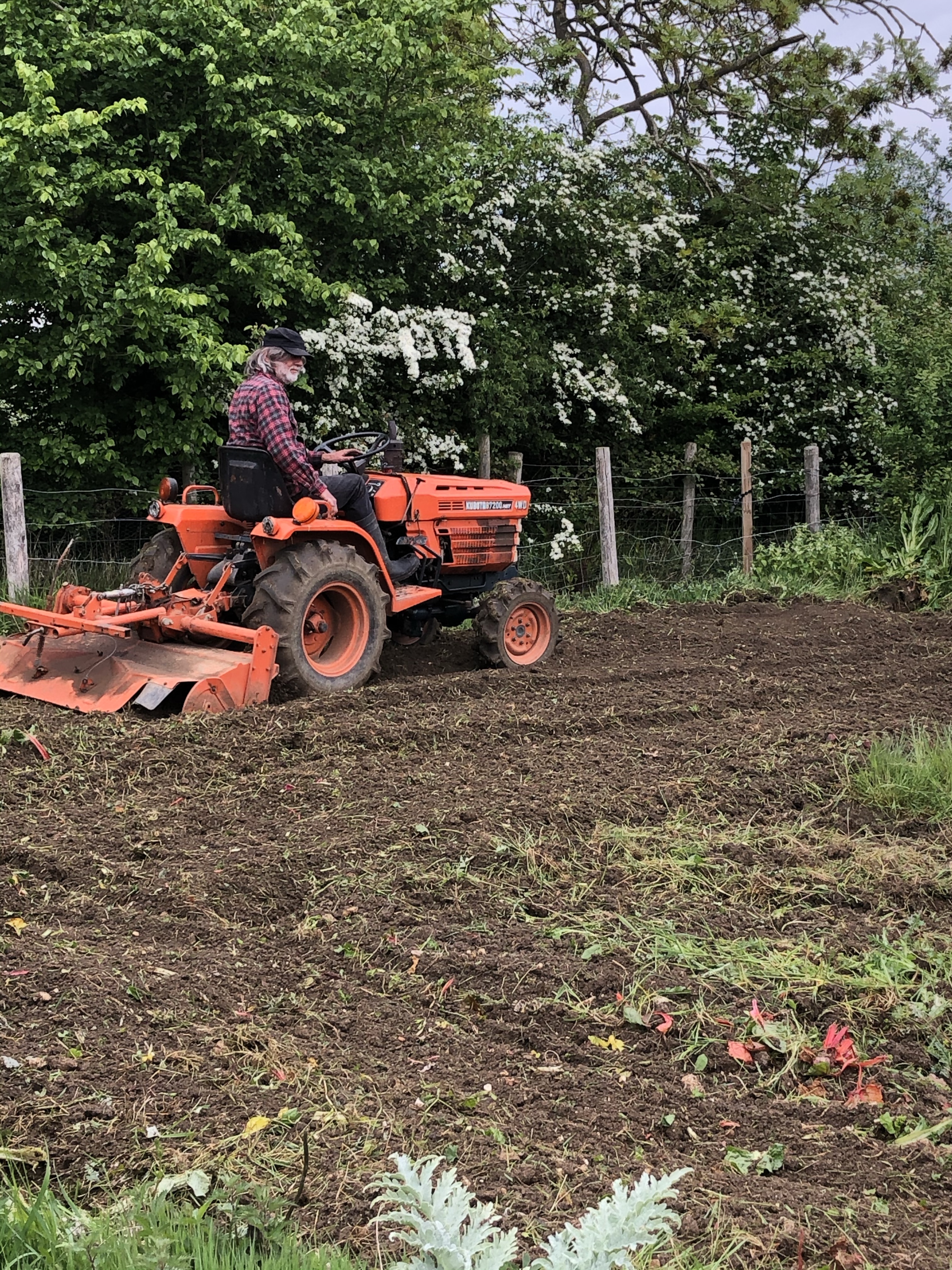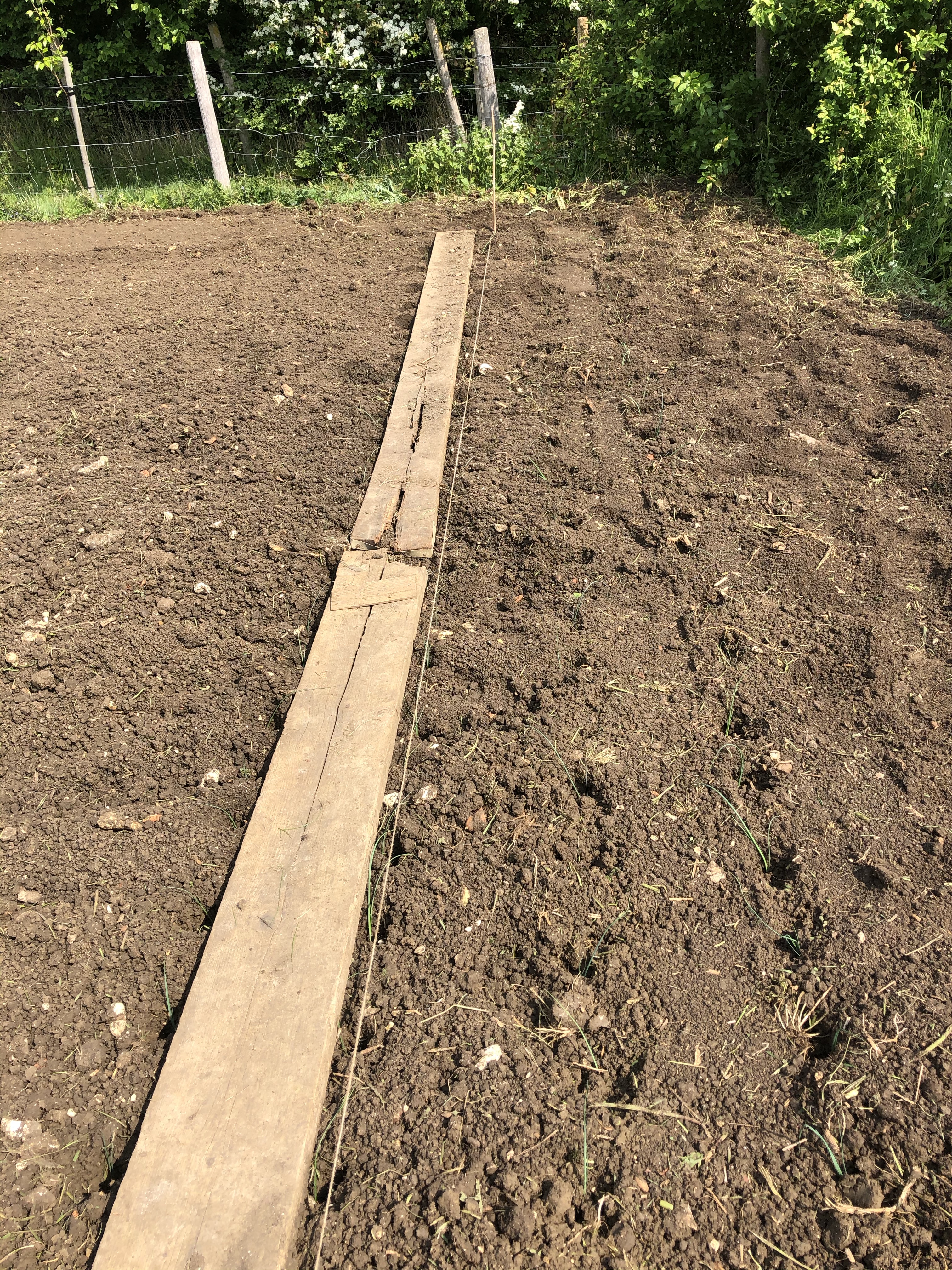 We were planting tiny leeks, this morning, in the newly ploughed far end of the garden