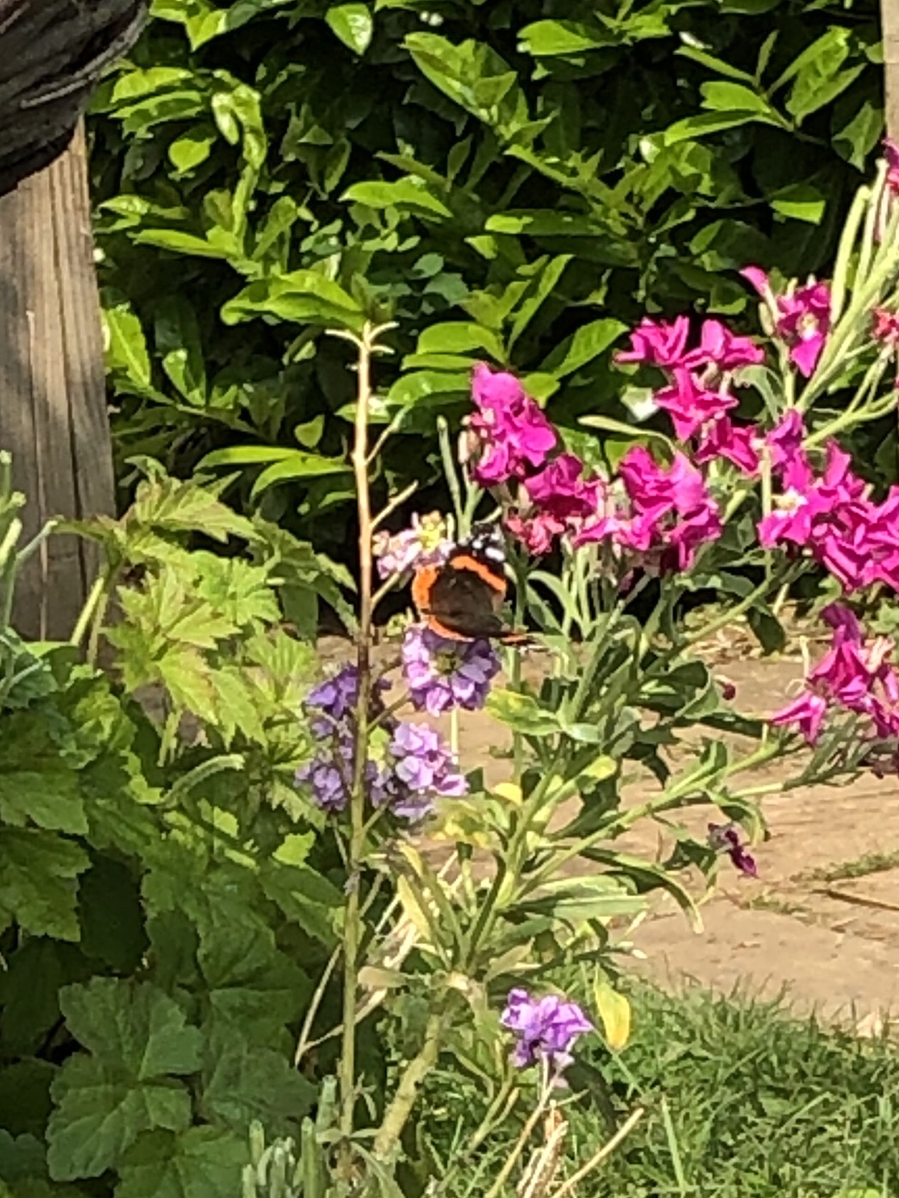 The sun came out and I took my coat back to the house and on my way to the kitchen door I came across a beautiful red admiral butterfly