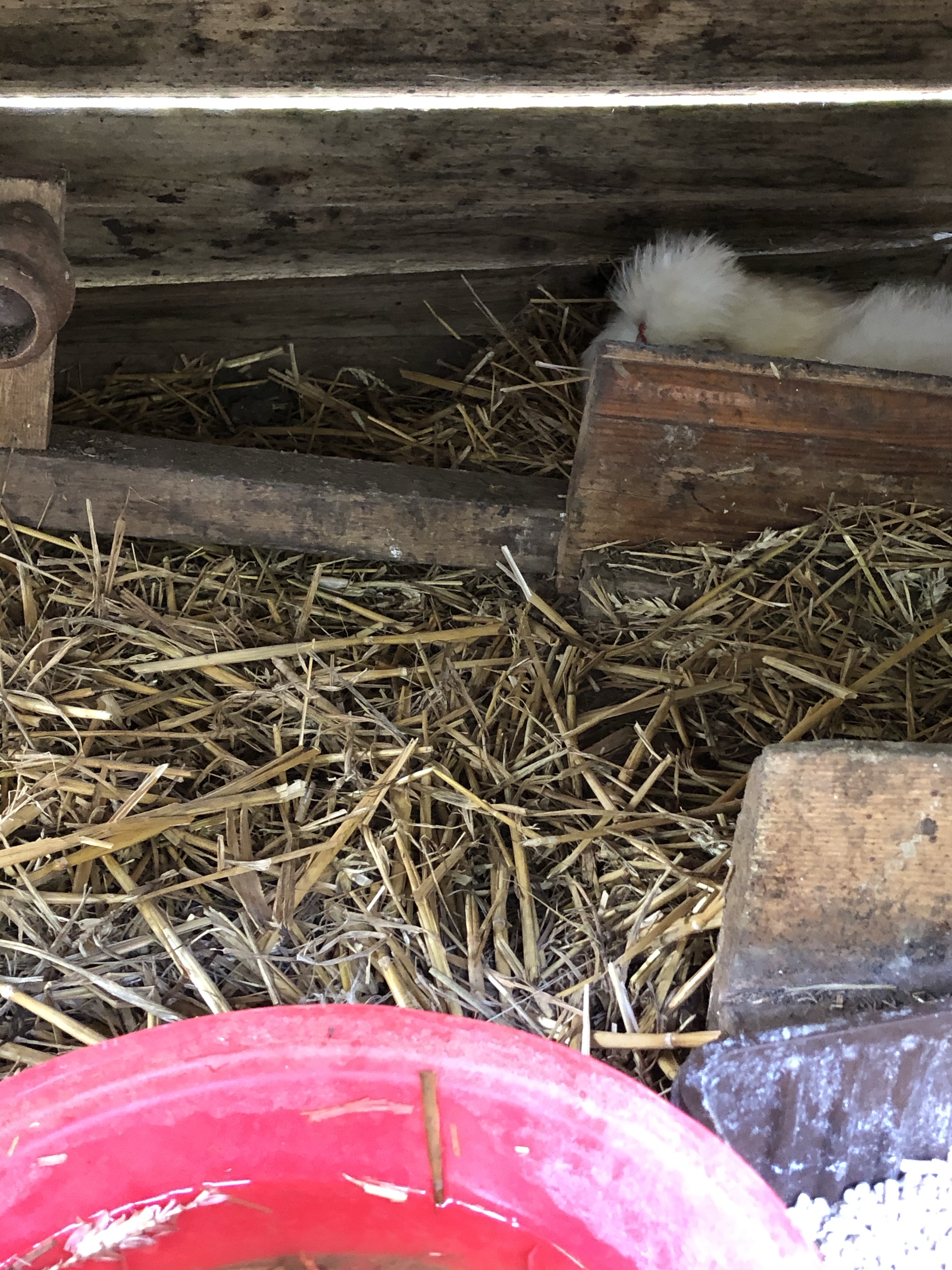 The other Silkie hen has gone broody and is sitting on 8 assorted eggs in the chicken ark