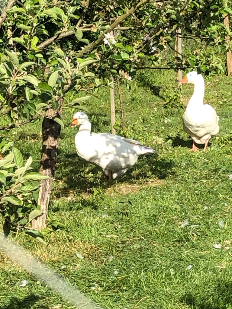 After several weeks recovering from injuries at the beak of one of the ganders, we have put goosey back with the flock.