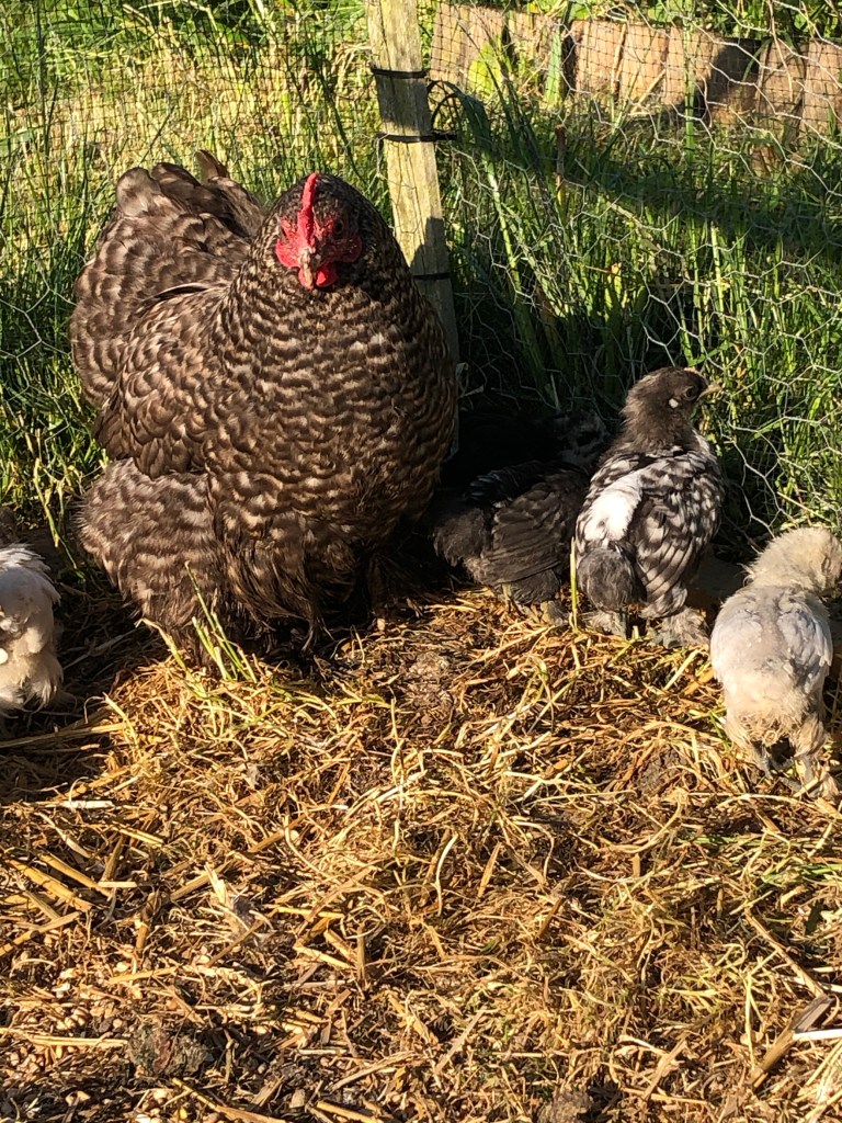 The day started early and well with sunshine at 7 am. I opened up the bantam and her 11 chicks and admired them. Each a perfect and unique individual.